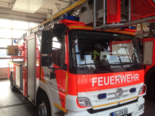 Das Standard-Hubrettungsfahrzeug der Feuerwehr Oldenburg ist die Drehleiter. Die Bilder zeigen das Fahrzeug der Feuerwache 1.